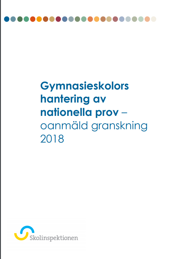 Skolinspektionen har gjort en oanmäld granskning av gymnasieskolors hantering av nationella prov under hösten 2018. Granskningen har omfattat 66 gymnasieskolor i sammanlagt 24 kommuner. Både kommunala och fristående skolor ingick i granskningen som skedde genom oanmälda verksamhetsbesök.