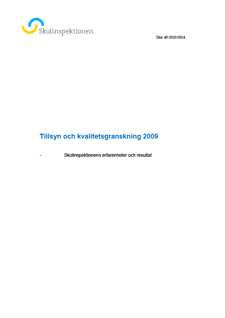 Skolinspektionens erfarenheter och resultat 2009. Rapporten innehåller en presentation och analys av myndighetens arbete utifrån besök i och kontakter med ett stort antal skolor, verksamheter och huvudmän. Besöken och kontakterna har skett i olika sammanhang med olika utgångspunkter men med samma målsättning - elevens rätt till en god utbildning i en trygg miljö.